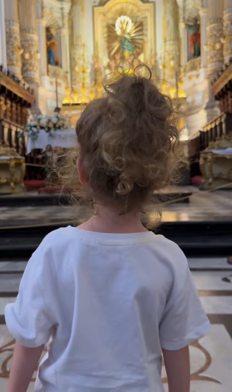 Legutóbb pedig arról posztolt Instagram-oldalán, hogy Lujzi nevű lánya imádkozik egy katolikus templomban.