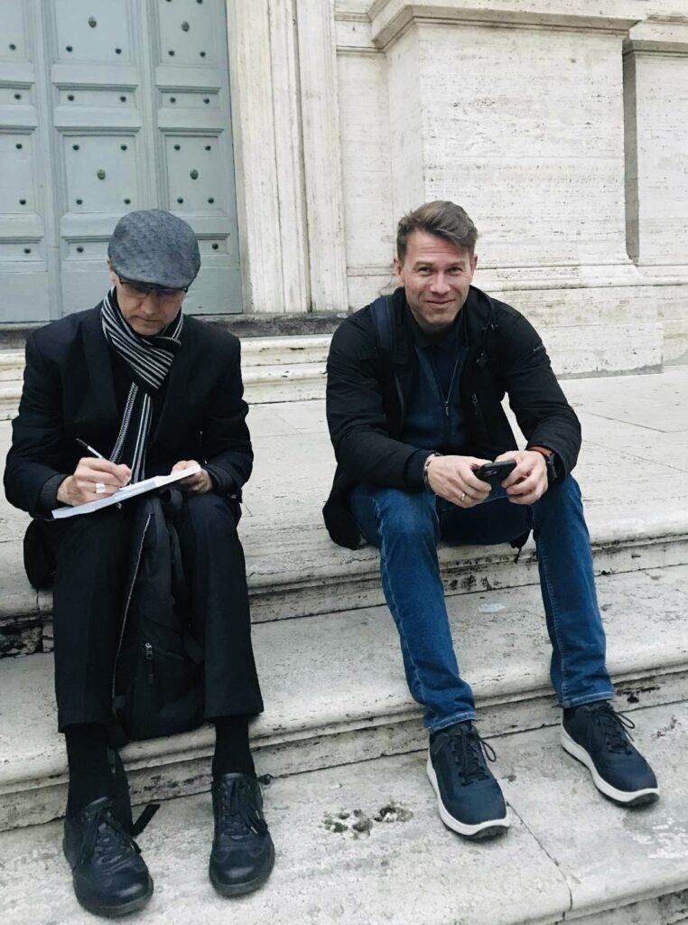 Az utolsó képen Balázs atyával ülünk utunk végén a csodálatos Il Gesú előtti lépcsőn, ahol talán a legértékesebb üzenetet kaptam, miközben a zarándoklat sok-sok élményének kincsesládájával kissé talán megfáradtan lehuppantunk a lépcsőre:
