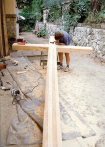 Tamás: Mindegyik keresztünk vörösfenyőből készült, ami igen kiváló tulajdonságokkal bír, nagyon időtálló építőanyag – nem is tartozik a legolcsóbbak közé. 20-25 évet bírnak.