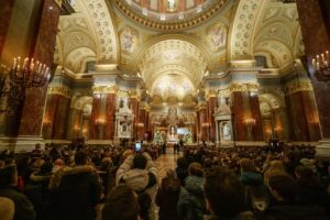 Nagyon fontos, hogy elmondjam, ez nem a felső tízezer privilégiuma, meg nem csak a papoké, szerzeteseké, hanem ti, akik itt vagytok, erre képesek vagytok. Azt gondolom, hogy meghallottatok valamit az Isten hívó hangjából, valami megérintette a lelketeket és eljöttetek, itt vagytok. Mindannyian, akik itt vagytok, az Isten szeretetének tanúi vagytok. A hívása is jó eséllyel – azt gondolom -, eköré épül, hogy Róla tegyünk tanúságot, az Ő szeretetéről.