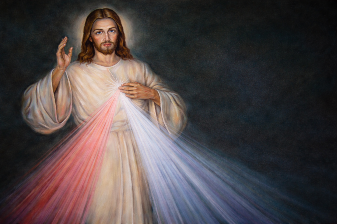Az ismert irgalmas Jézust ábrázoló kép Szent Fausztina nővér látomása alapján terjedt el: